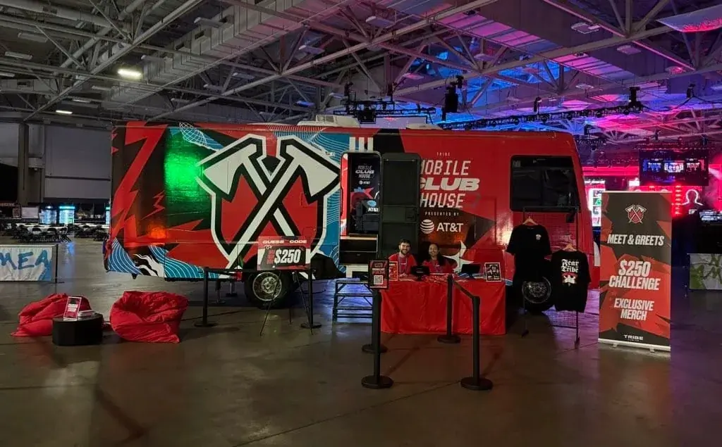 Enter the AT&T Mobile Gaming Club House. This custom-wrapped and decorated RV serves as a (literal) mobile gaming content machine, with Tribe creators and players traveling to various events and locations to produce compelling content, as well as meet-and-greets with Tribe's faithful fanbase.