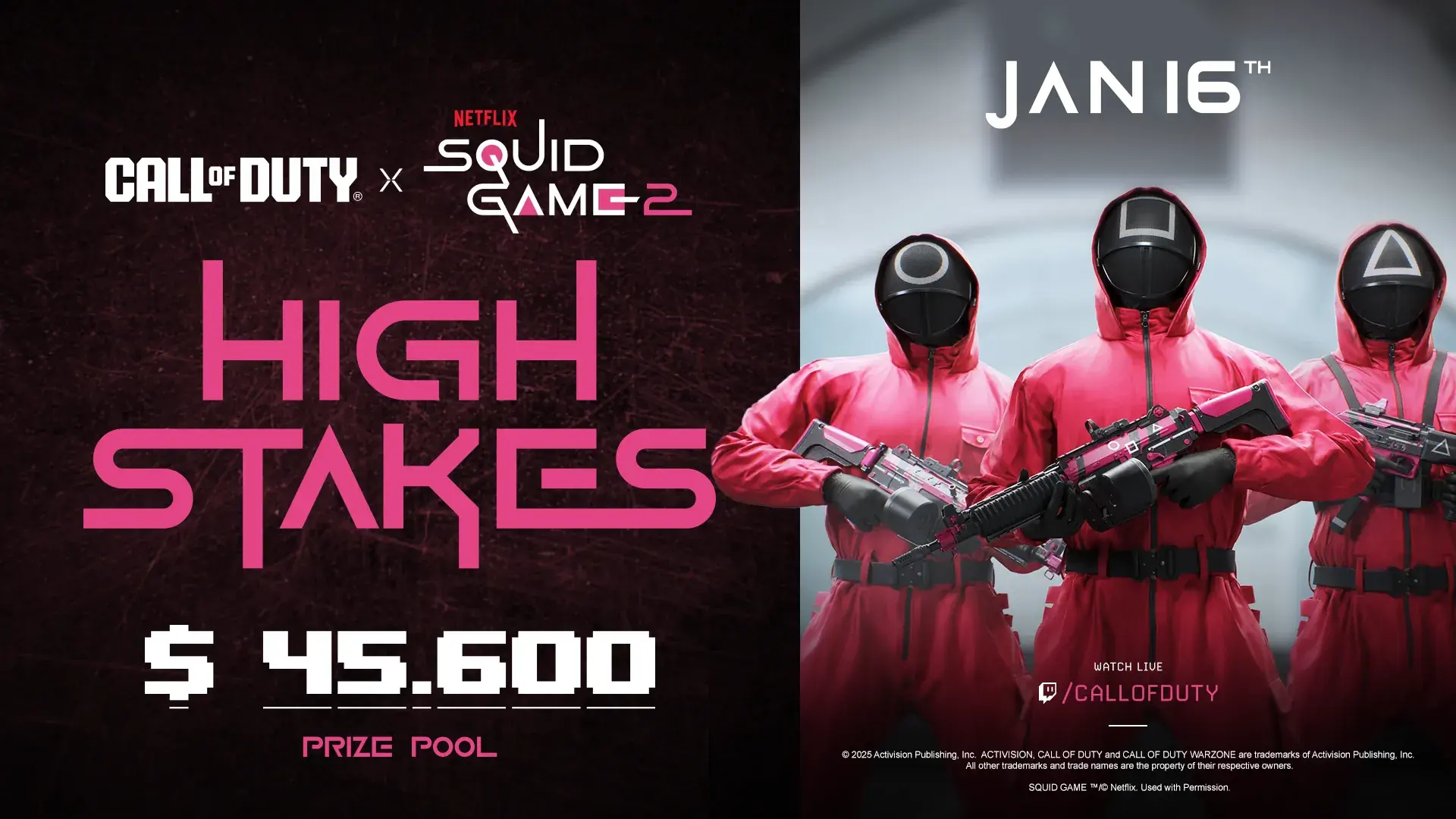 To capitalize on the worldwide excitement surrounding the premiere of Netflix's Squid Game Season 2, Call of Duty teamed up with Tribe Gaming to design a custom community tournament. This collaboration was built to increase visibility for both the series's newest season and the exclusive Squid Game-themed in-game skins.